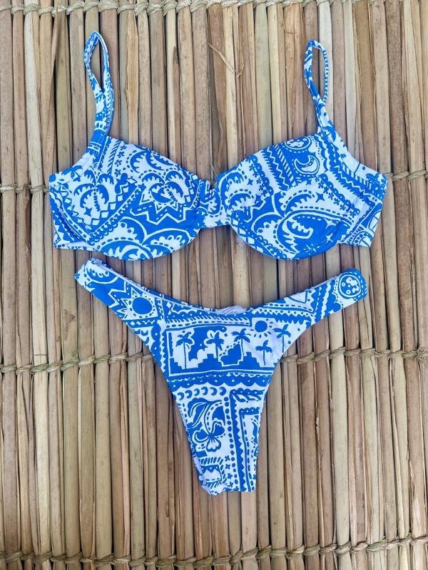 Este encantador biquíni Capri apresenta uma estampa azul e branca que remete às águas cristalinas do Mediterrâneo. O top asa delta conta com bojo estruturado para excelente sustentação e alças finas com amarração ajustável nas costas, permitindo o ajuste perfeito ao seu corpo.